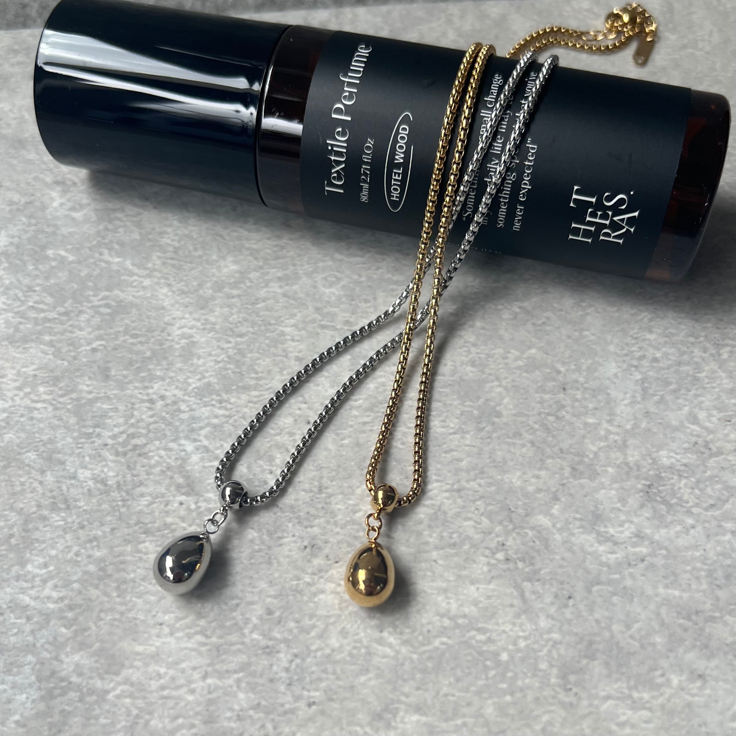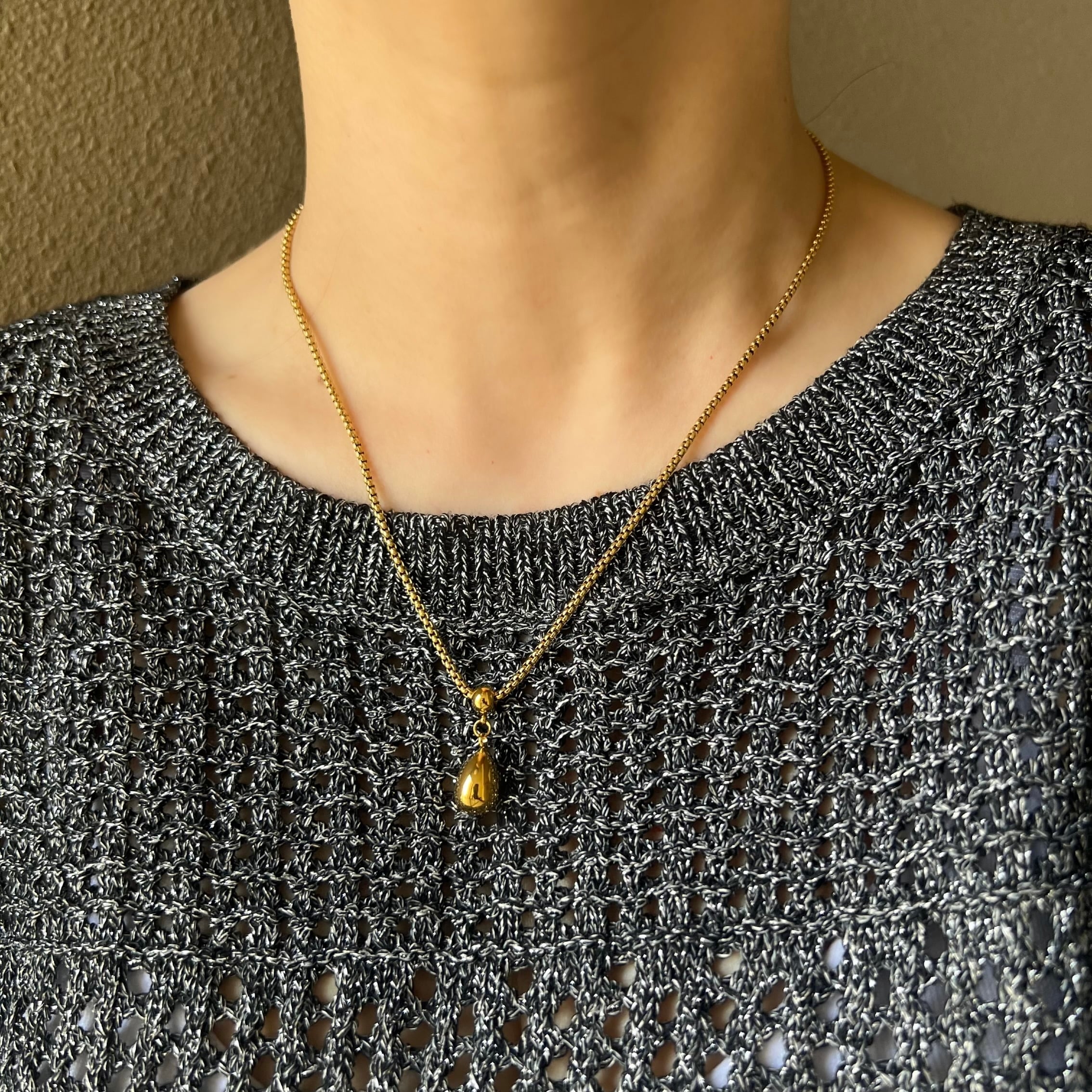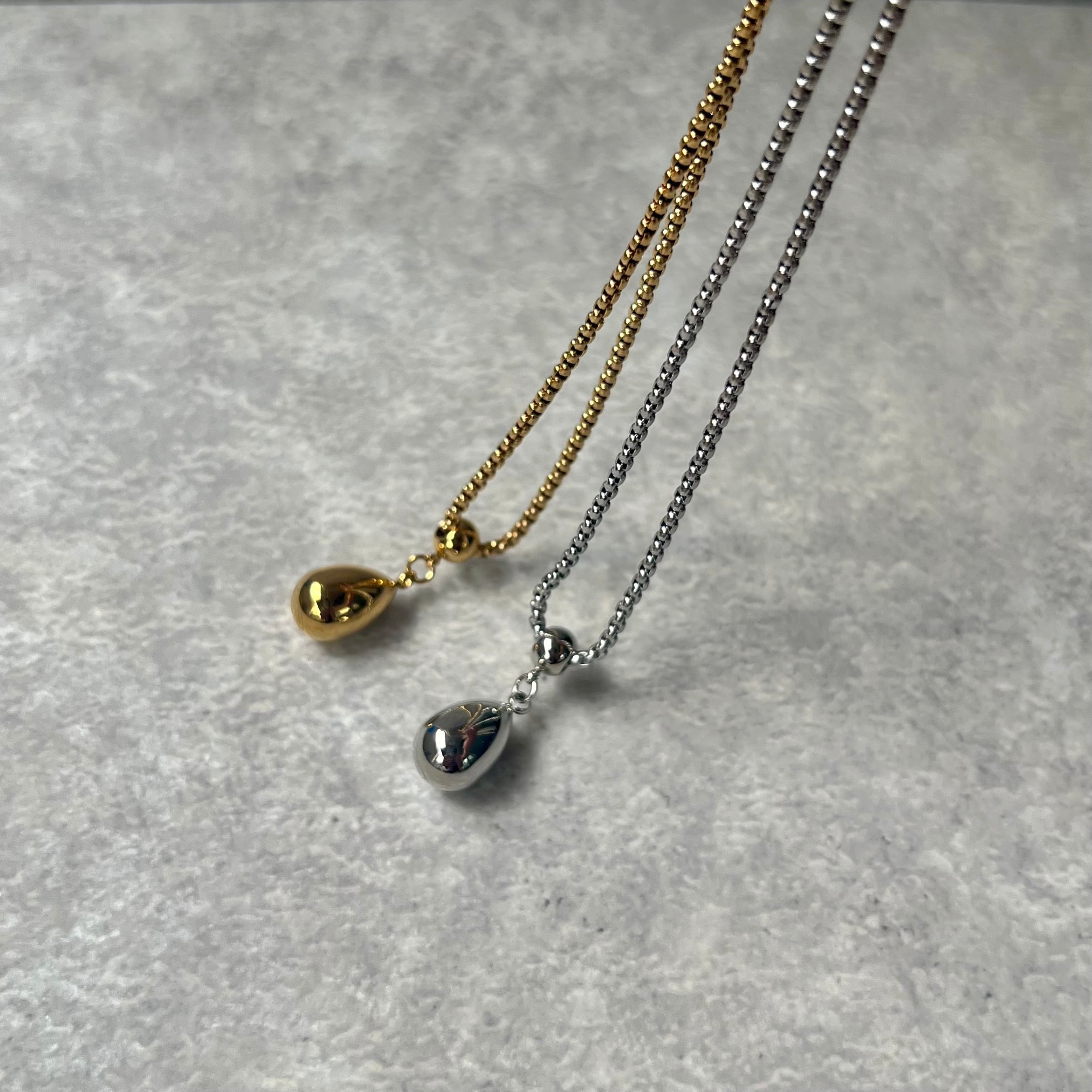 コロンとしたドロップデザインに甲丸チェーンを合わせたネックレスです。