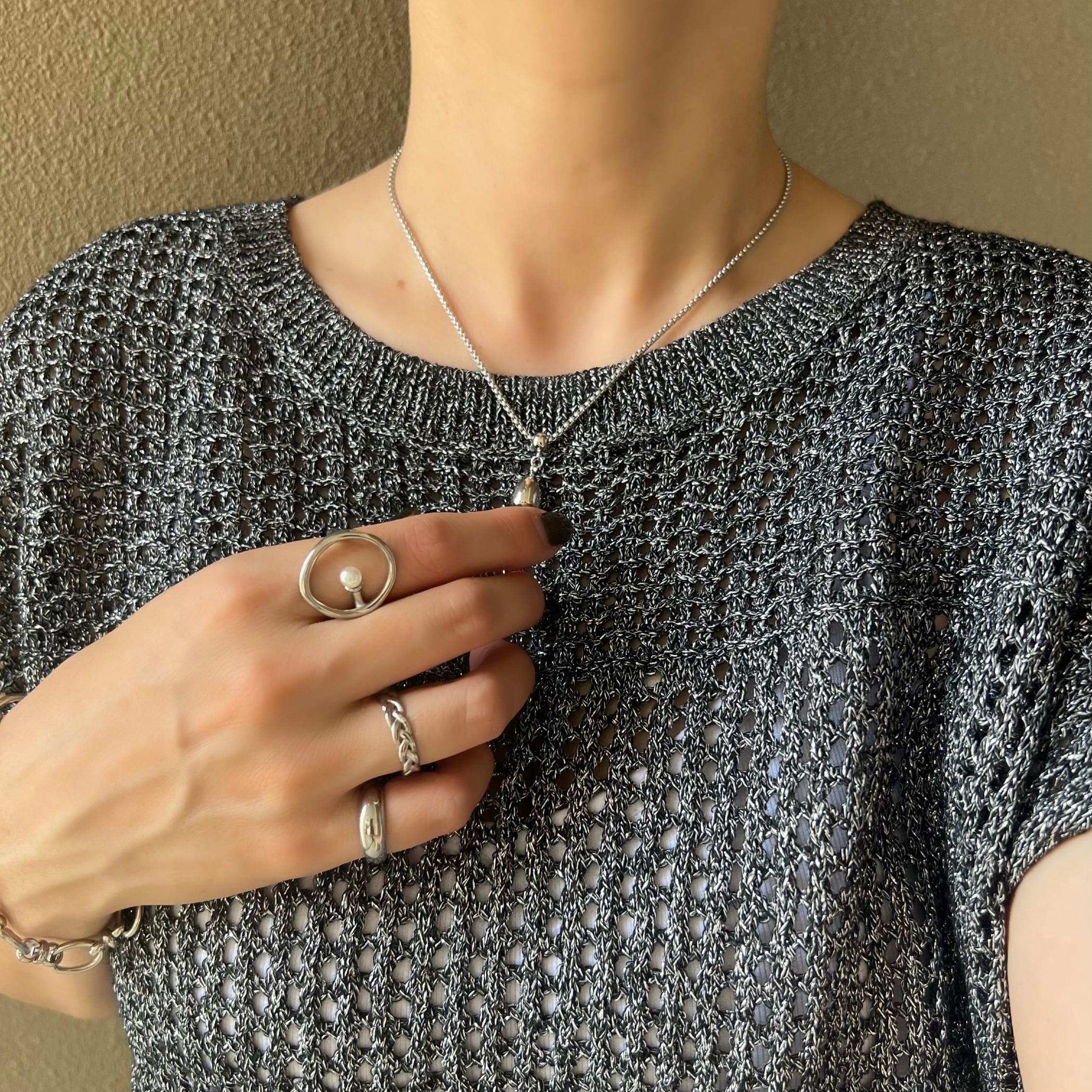 メンズライクな印象の甲丸チェーンと女性らしいドロップデザインの組み合わせはきれいめにもカジュアルにも合わせやすく、シンプルコーデのポイントにもなります。