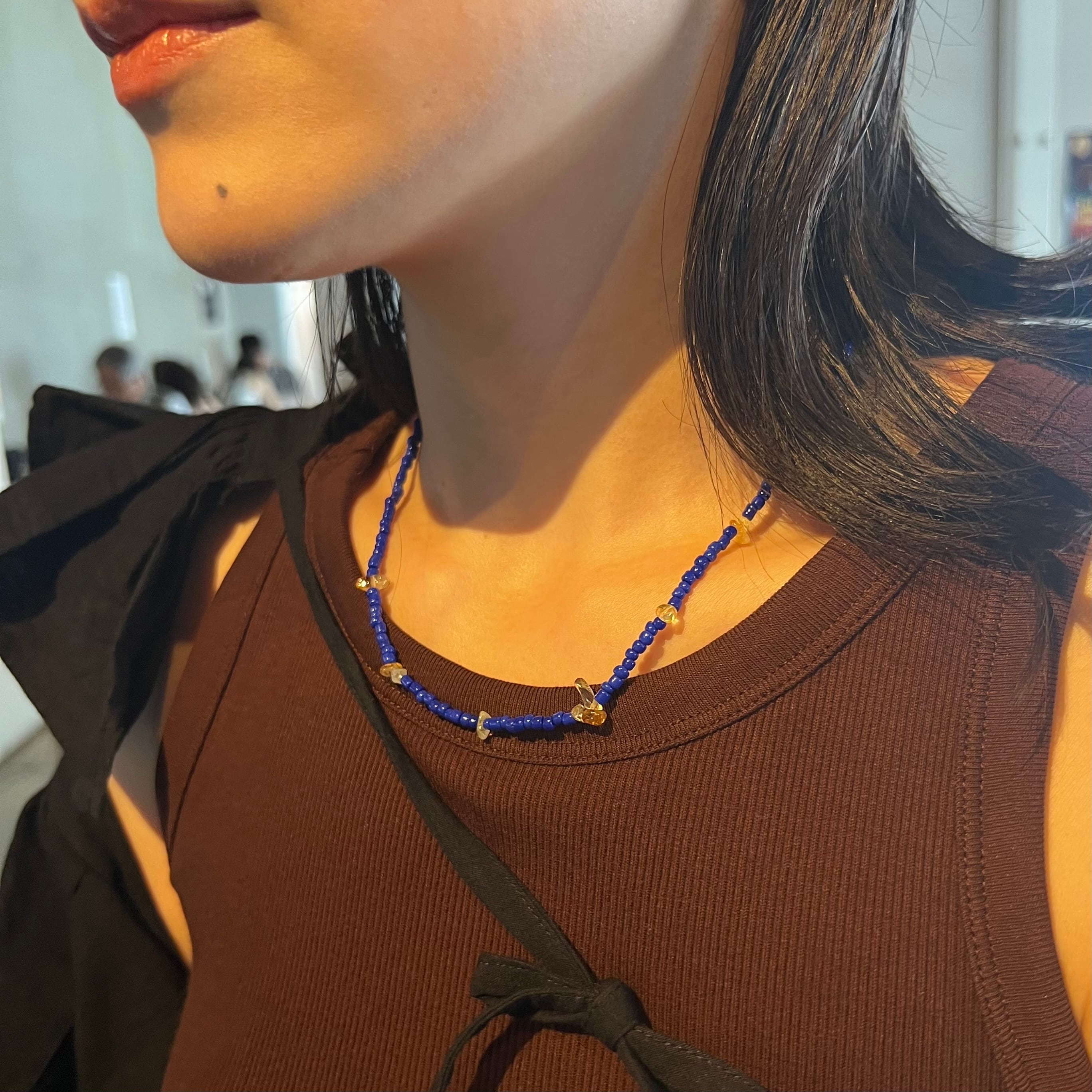 今年はビーズネックレスレイヤードがトレンドですので、コーデのアクセントとして取り入れてみてください!