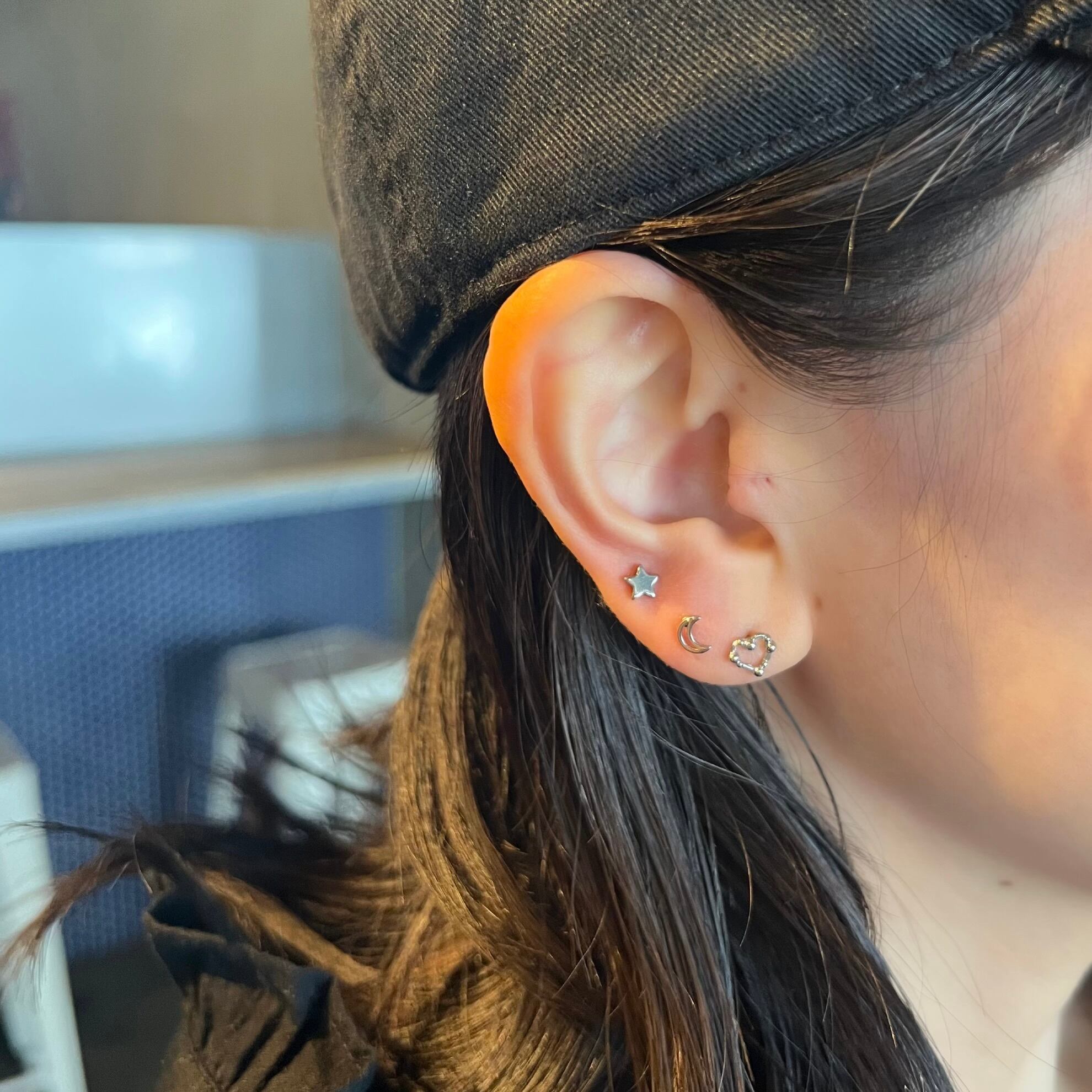 耳たぶにつけるのはもちろん、トラガスピアスとしてもお楽しみいただけます。