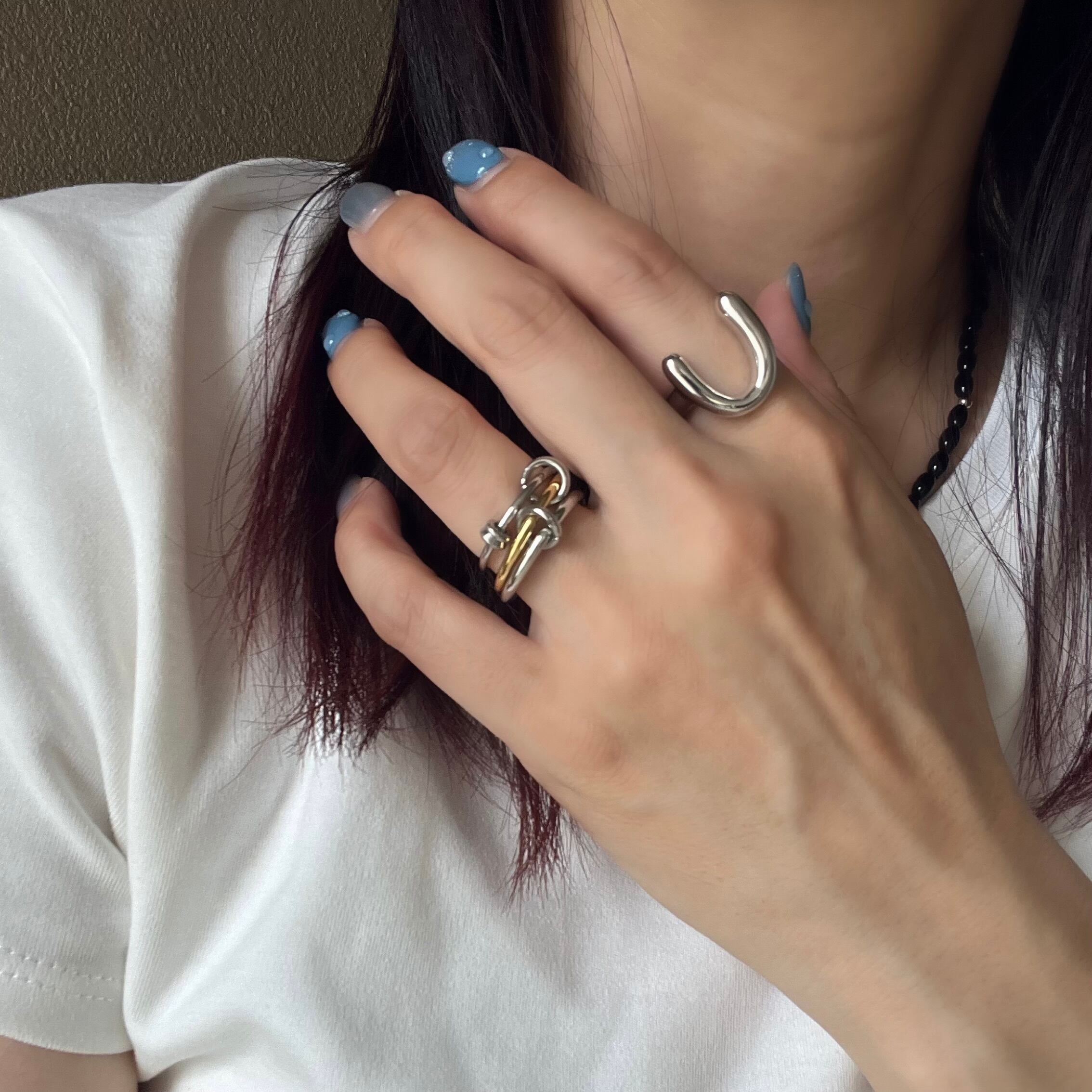 3つのリングが繋がったデザインなのですが、3連リングとしても1本ずつでも、2連×1リングとしても幅広く着用していただけます☺︎