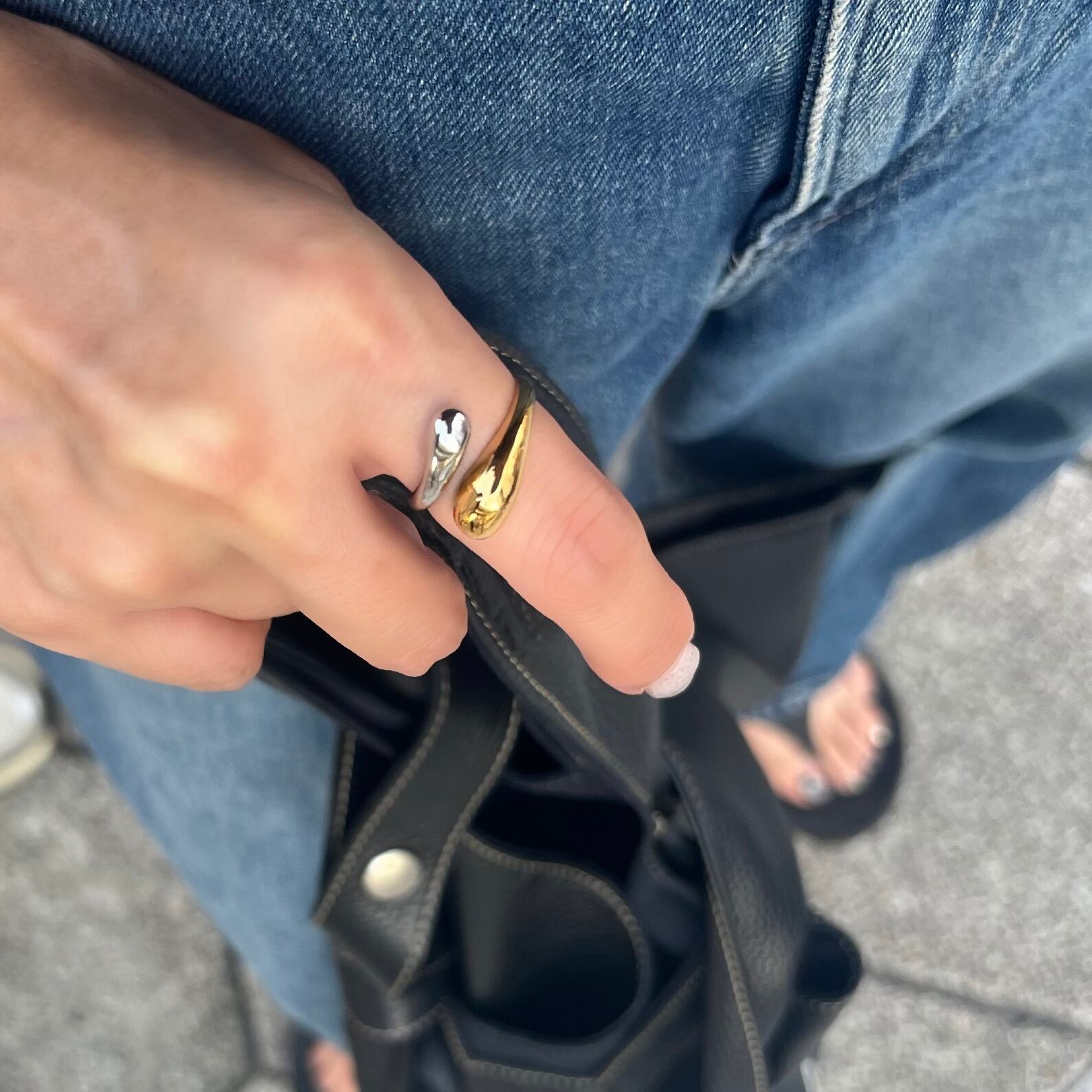silver×goldミックスカラーのユニークなニュアンスデザインが魅力のリング。