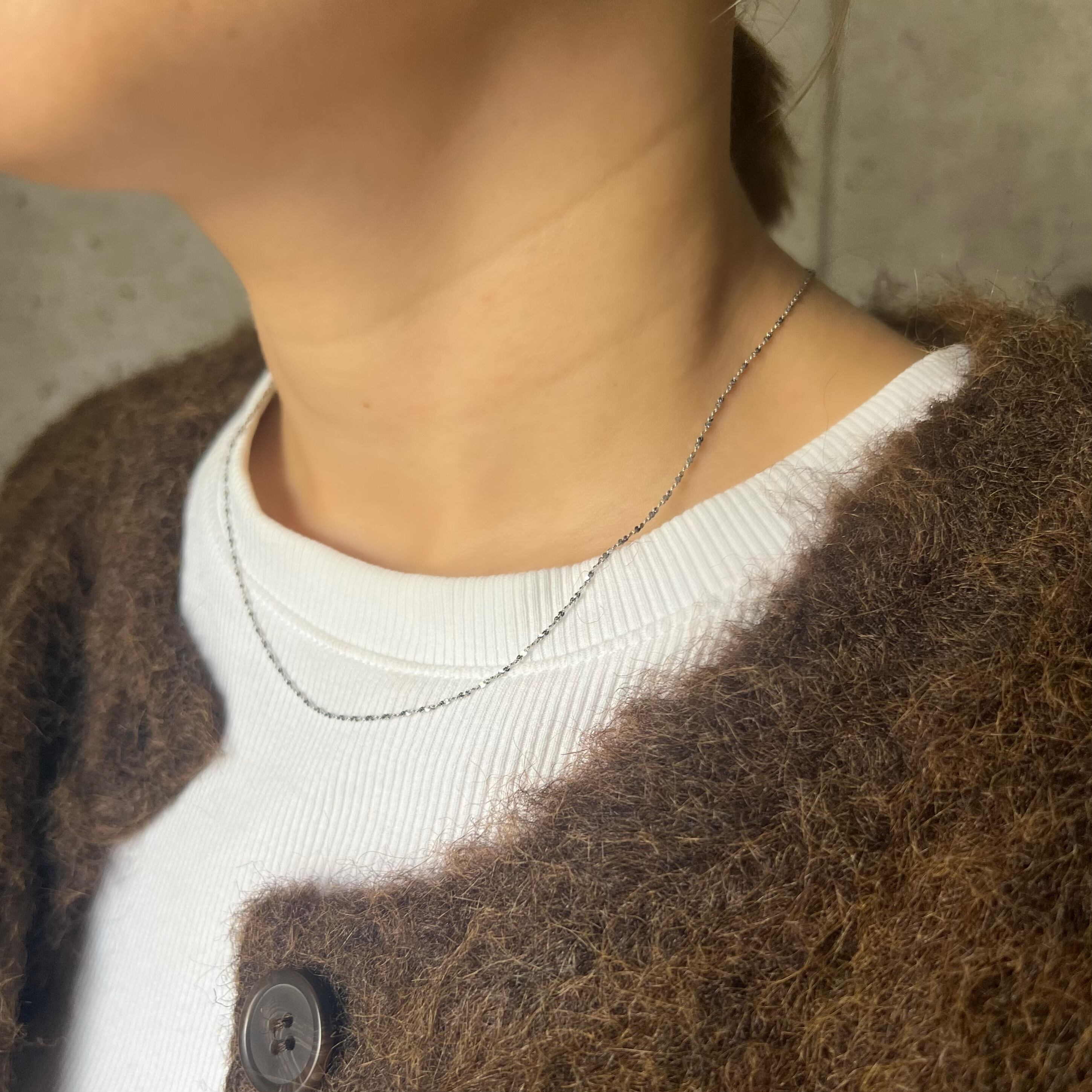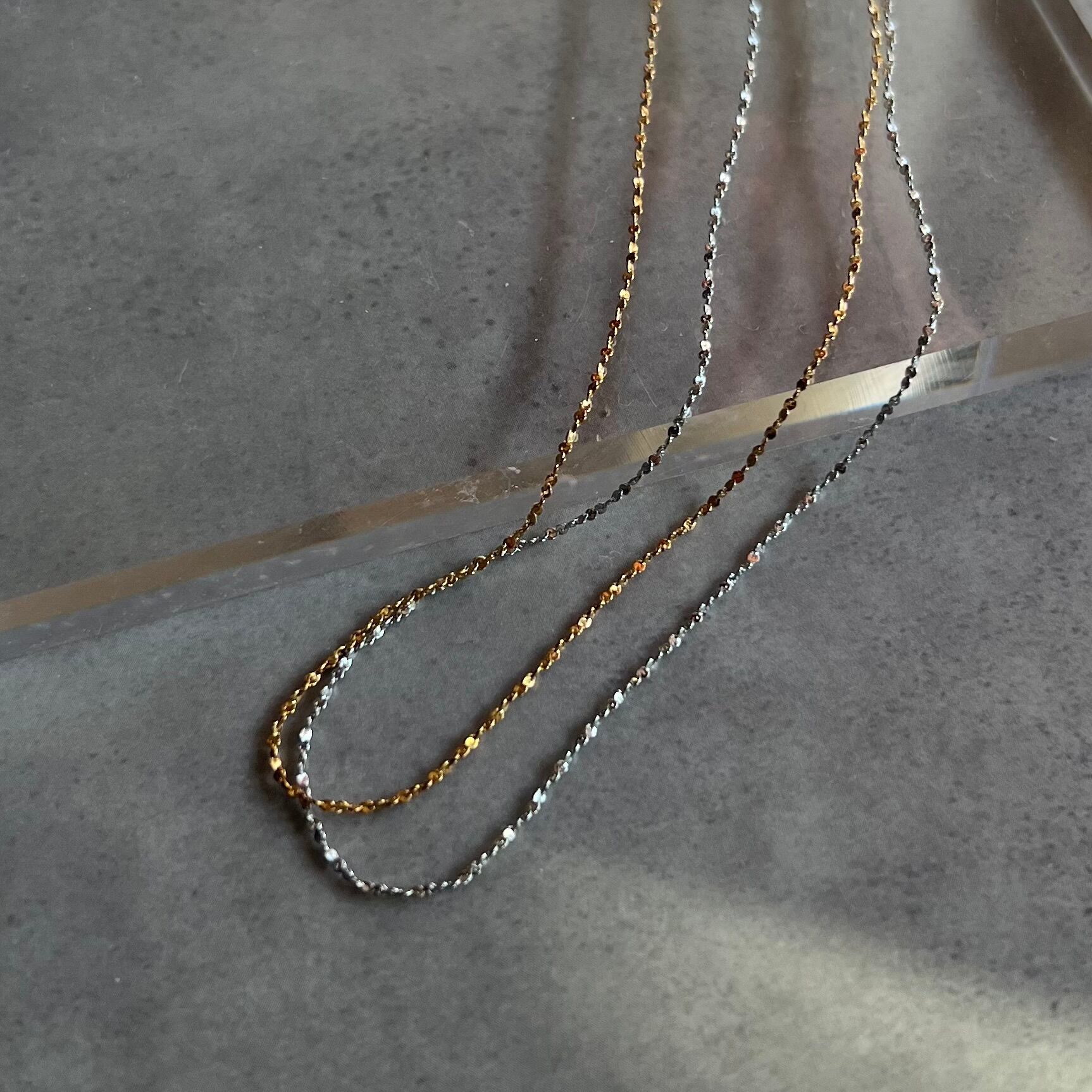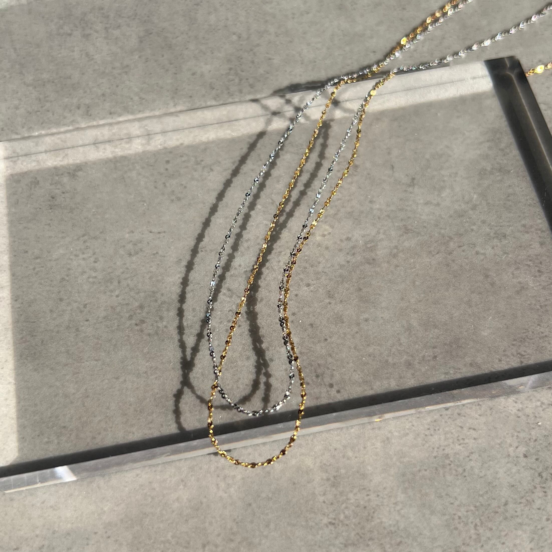 華奢で繊細な小さな粒チェーンが煌めき、シンプルながらも存在感を引き立てます。