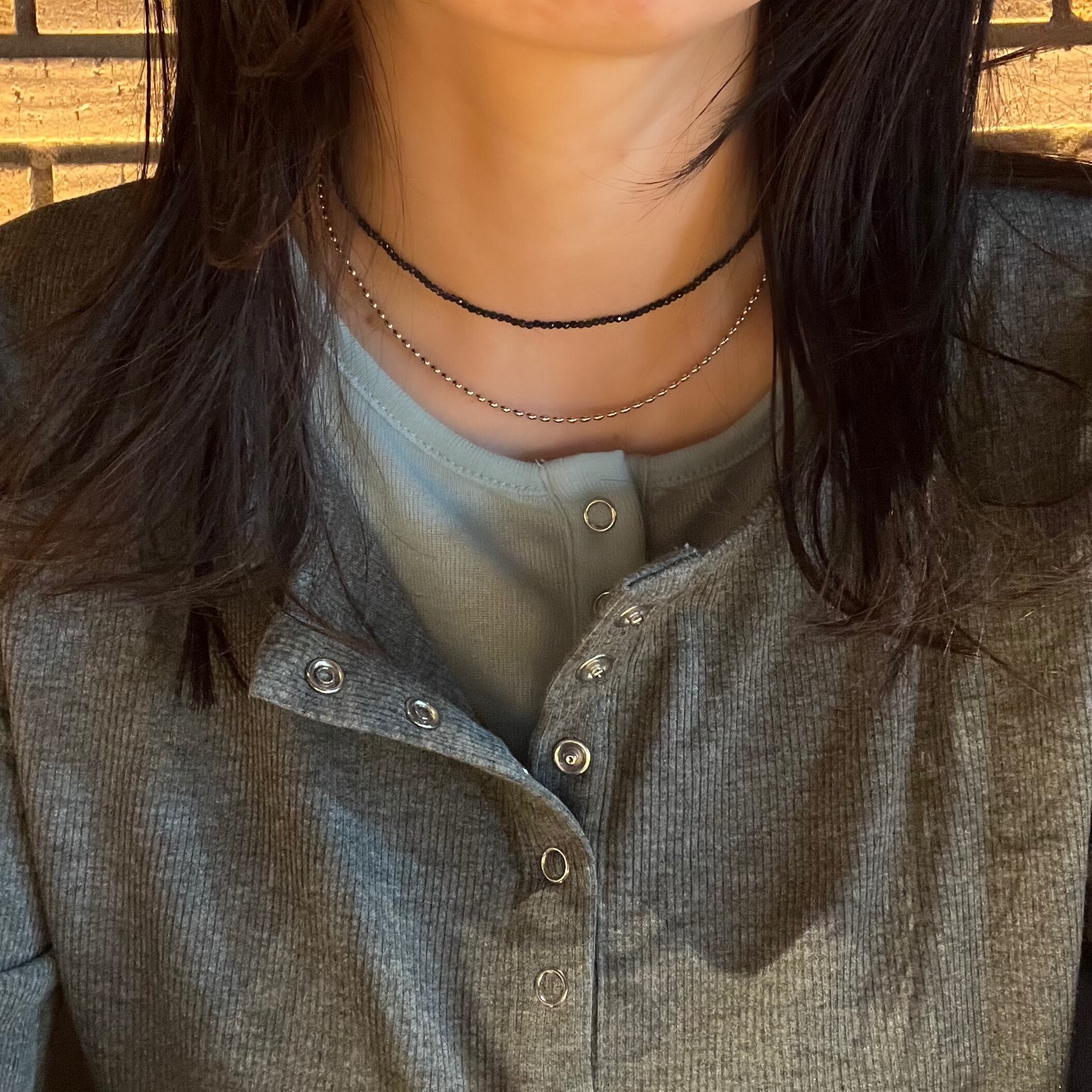 シンプルなチェーンタイプなのでレイヤードにもぴったりで使い勝手のいいネックレスです。