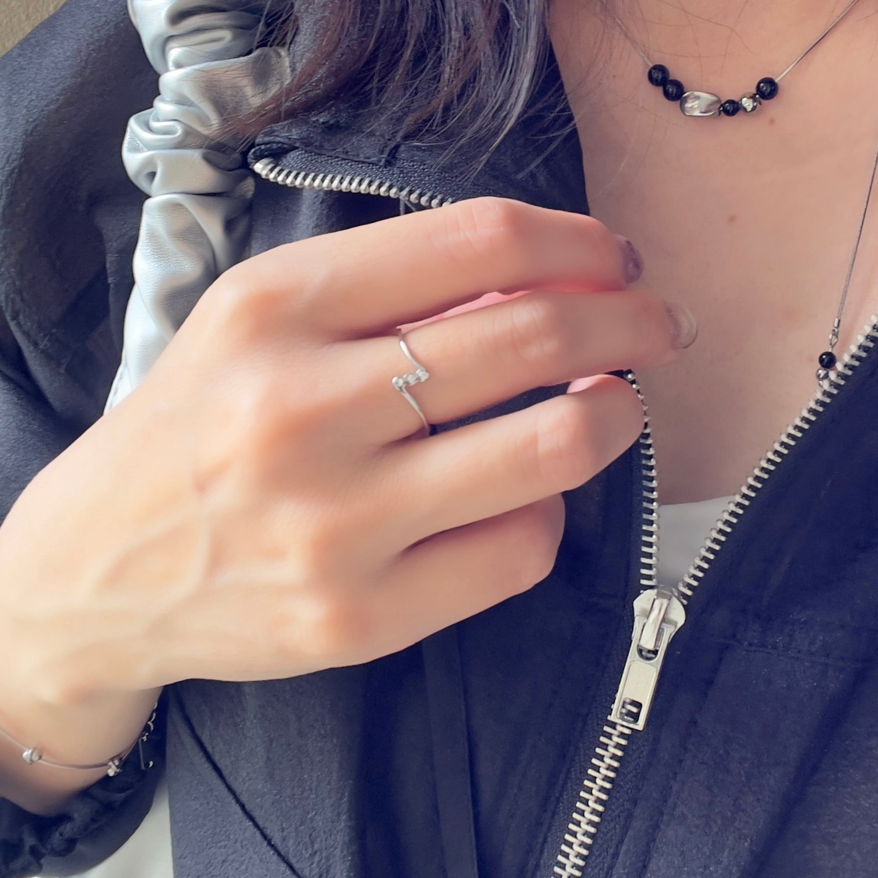 さりげないストーンと華奢なカーブラインが指をきれいに見せてくれます。
