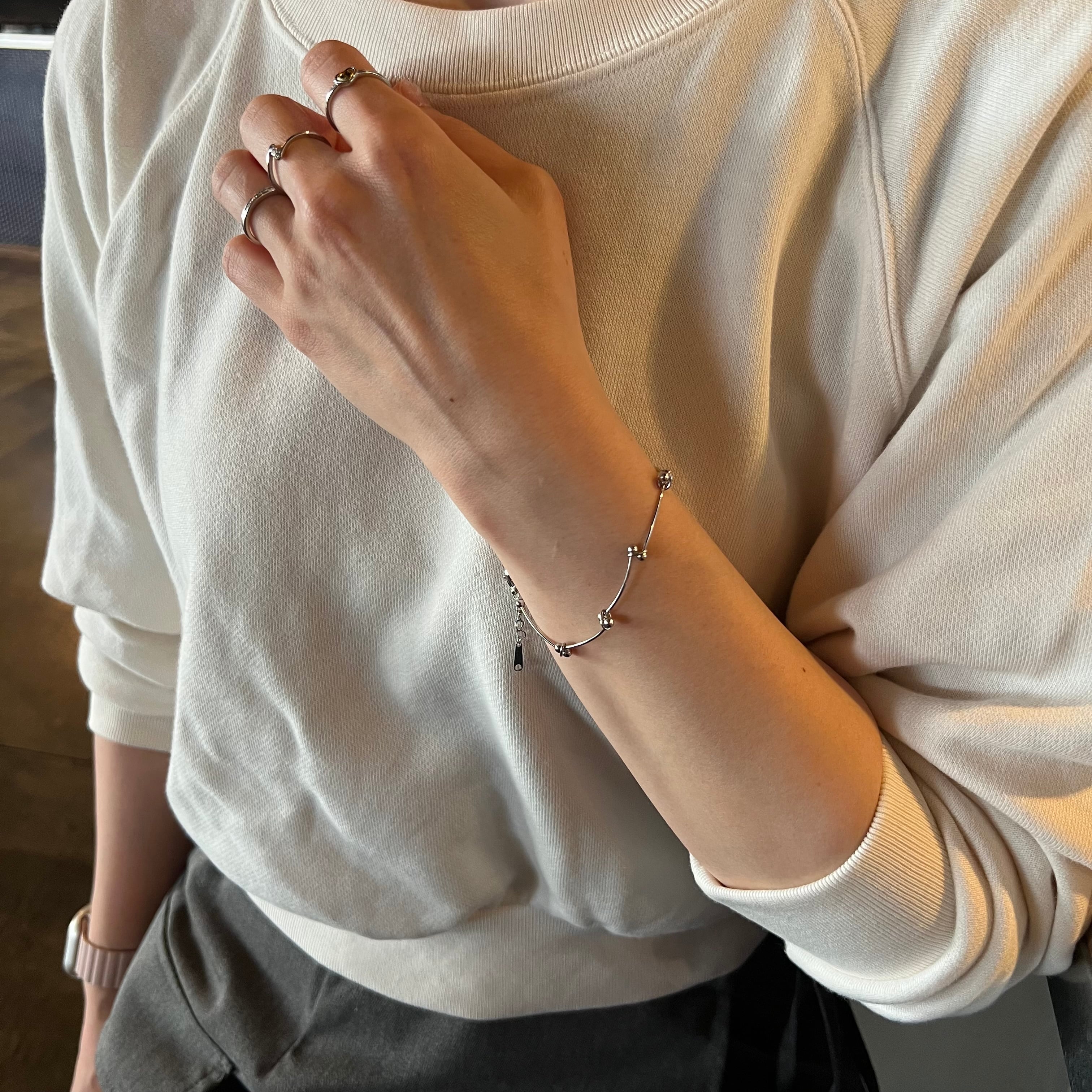 いつものコーデに細めブレスレットが加わることで手首を華やかに彩り、どんなスタイルにもマッチします。