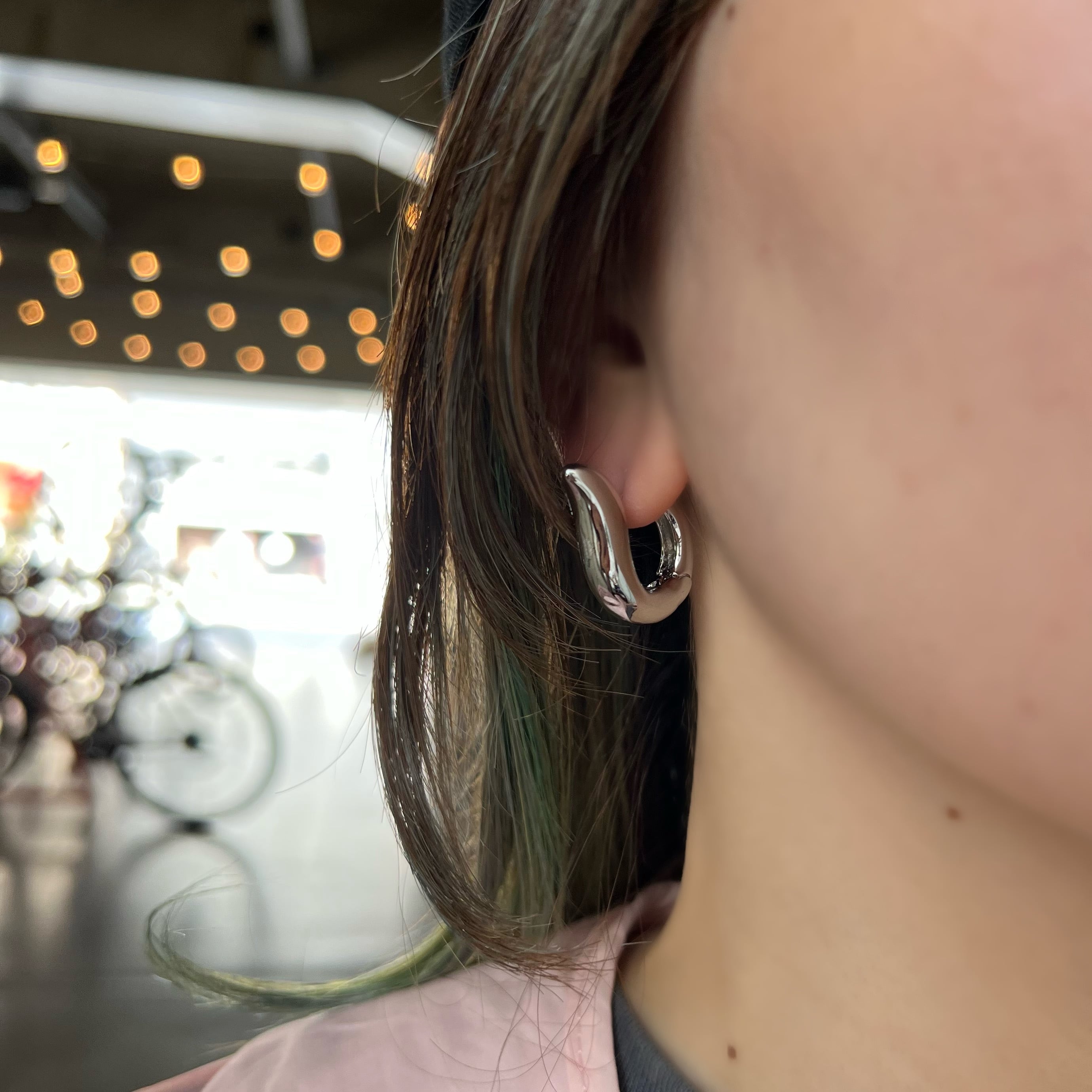 シンプルな見た目でありながら、ちょっと変わったデザインが特徴のピアス。