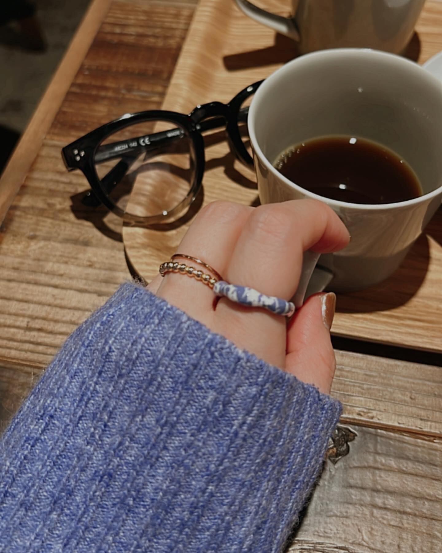 全部の指につけても、1本だけでもさりげないオシャレを楽しめるリング。大きめリングと極細リングとのレイヤードのバランスは最高にかわいいです☺︎